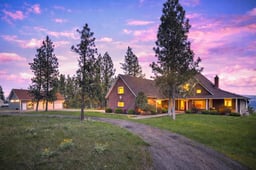 Welcome to Latah Lodge, where rustic serenity meets modern elegance! This stunning 1.5-story home sits on 5 beautiful acres with panoramic valley views. The warm and inviting main level boasts vaulted ceilings, newly refinished cherrywood flooring, abundant windows, and an expansive, open design. You'll love the large kitchen with cherry cabinetry, granite countertops, convenient eating bar, and walk-in pantry. The main level also offers a sun-drenched home office, bedroom with walk-out access to the composite deck, two full bathrooms, and laundry/mud room. The second floor greets you with a primary ensuite featuring double sinks, shower, jetted tub, and large walk-in closet; and you'll find another bedroom with private bath, plus a huge family room perfect for gatherings. Enjoy sunsets from your private backyard vineyard and patio, soak in views from the hot tub and private deck, and relax on the covered front porch. Plus, the huge 29'x47' stick-built shop with shelving offers endless possibilities! Must see...call today!